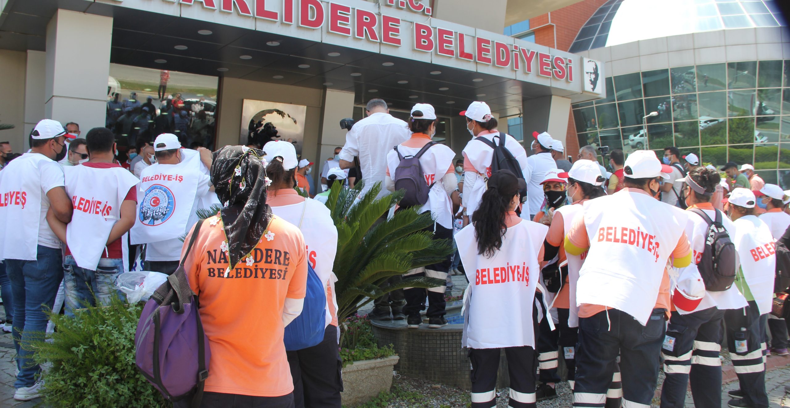 Narlıdere Belediyesi’ne bağlı NARBEL şirketinde çalışan işçiler, Toplu İş Sözleşmesi (TİS) görüşmelerinde taleplerinin kabul edilmemesi halinde aldıkları grev kararını Cuma günü fiili olarak uygulayacaklarını açıkladı. Belediye binası önünde bir araya gelen yüzlerce işçi, “Sadaka değil toplu sözleşme istiyoruz” yazılı pankart açarken, sık sık “Direne direne kazanacağız”, “Hak verilmez alınır, zafer sokakta kazanılır” sloganları attı. Eyleme Belediye İş İzmir 2 Nolu Şube yönetimi de katıldı.