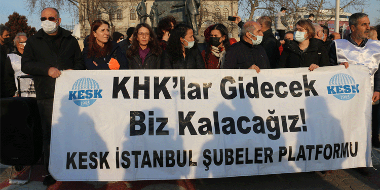 Kamu Emekçileri Sendikaları Konfederasyonu (KESK) İstanbul Şubeler Platformu, OHAL kararnameleri ile ihraç edilen kamu emekçilerinin işlerine geri iade edilmesi talebiyle, Kadıköy’deki Beşiktaş İskelesi’nde açıklama yaptı. “KHK’ler gidecek biz kalacağız” pankartının açıldığı açıklamada “Haksız, hukuksuz KHK ile ihraç edildim” yazılı dövizler taşınırken sık sık  “İşimizi geri alacağız”, “Direne direne kazanacağız” sloganları atıldı. Açıklamaya Halkların Demokratik Partisi (HDP) İstanbul Milletvekili Züleyha Gülüm, Oya Ersöz ve çok sayıda kişi katıldı.