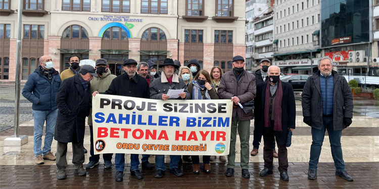 Ordu Çevre Derneği (ORÇEV), Altınordu ilçesine dair imar planı değişikliklerinin görüşüleceği Ordu Büyükşehir Belediyesi Meclis toplantısı öncesi belediye önünde açıklama yaptı. “Proje sizinse, sahiller bizim. Betona hayır” pankartının açıldığı açıklamaya çok sayıda yurttaş katıldı.