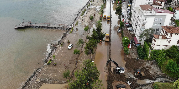 Ekipler alanda gece boyunca iş makinelerinin yardımıyla çalışmalarını sürdürdü. Ulaşımın kapalı olduğu Karadeniz Sahil Yolu’nda devam eden çalışmalar ise havadan görüntülendi.