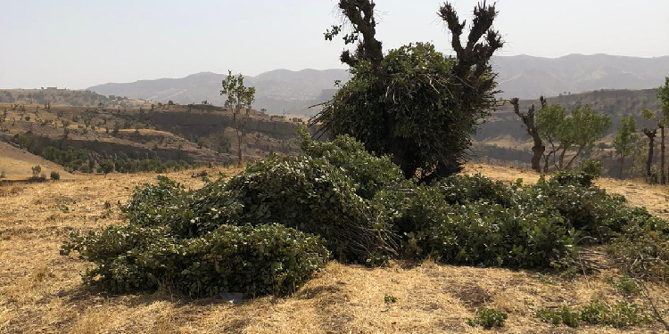 Mahalleli, arazilerinde bulunan ağaçların kesilmesine tepki gösterdi.
