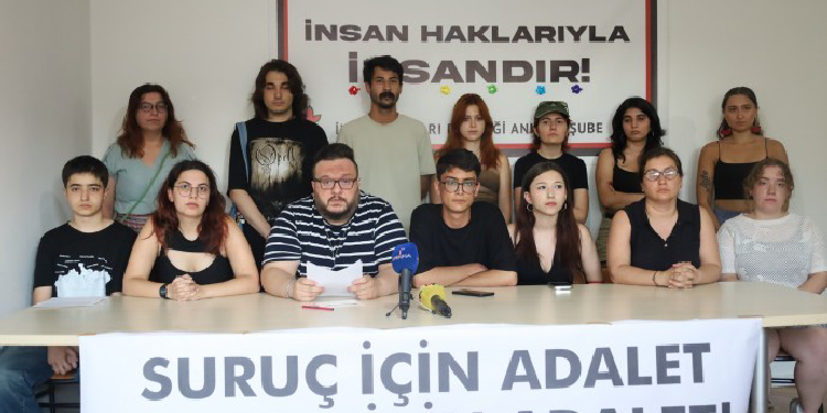 Hem 10 Ekim Ankara Gar Katliamı, hem de Suruç Katliamı için adalet demekten vazgeçmeyeceklerini vurgulayan Gözlügöl, “Bu sene de her yıl olduğu gibi 20 Temmuz’da, Suruç Katliamının yıl dönümünde, şehir merkezlerinde anmalar düzenlenmek istendi. Ankara’da ise Güvenpark’ta düzenlenmek istenen anmaya, her yıl olduğu gibi, polis saldırıları gerçekleşti ve yine en sert biçimde baskı uygulamaktan, 33’leri anmak isteyen gençlere işkence etmekten çekinmedi. Aralarında İHD Gençlik Komisyonundan üyelerimizin de bulunduğu birçok arkadaşımız alanda işkencelere maruz kaldı, 41’i işkenceyle gözaltına alındı, polisin gözaltındaki türlü kötü muameleleriyle mücadele etmek zorunda kaldı. 41 gençten 23’ü ifadeleri alındıktan sonra serbest bırakıldı, 18’i ise mevcutlu gözaltında tutularak ertesi gün savcılığa ifade verdi. 4 kişi bu ifadelerin ardından salınırken 10’u tutuklama talebiyle, 4’ü adli kontrol talebiyle hakim karşısına çıkarıldı ve hakim 14 kişi adli kontrol tedbirleri uygulanmasına hükmetti. Bu unutturma ve var olan anmaları bastırma çabası ise eli kanlı IŞİD çeteleri tarafından işlenmiş olan bu gençlik katliamına yaptığımız anmaların 10 yıldır hala yasaklanmaya çalışıldığını gösteriyor” diye konuştu.