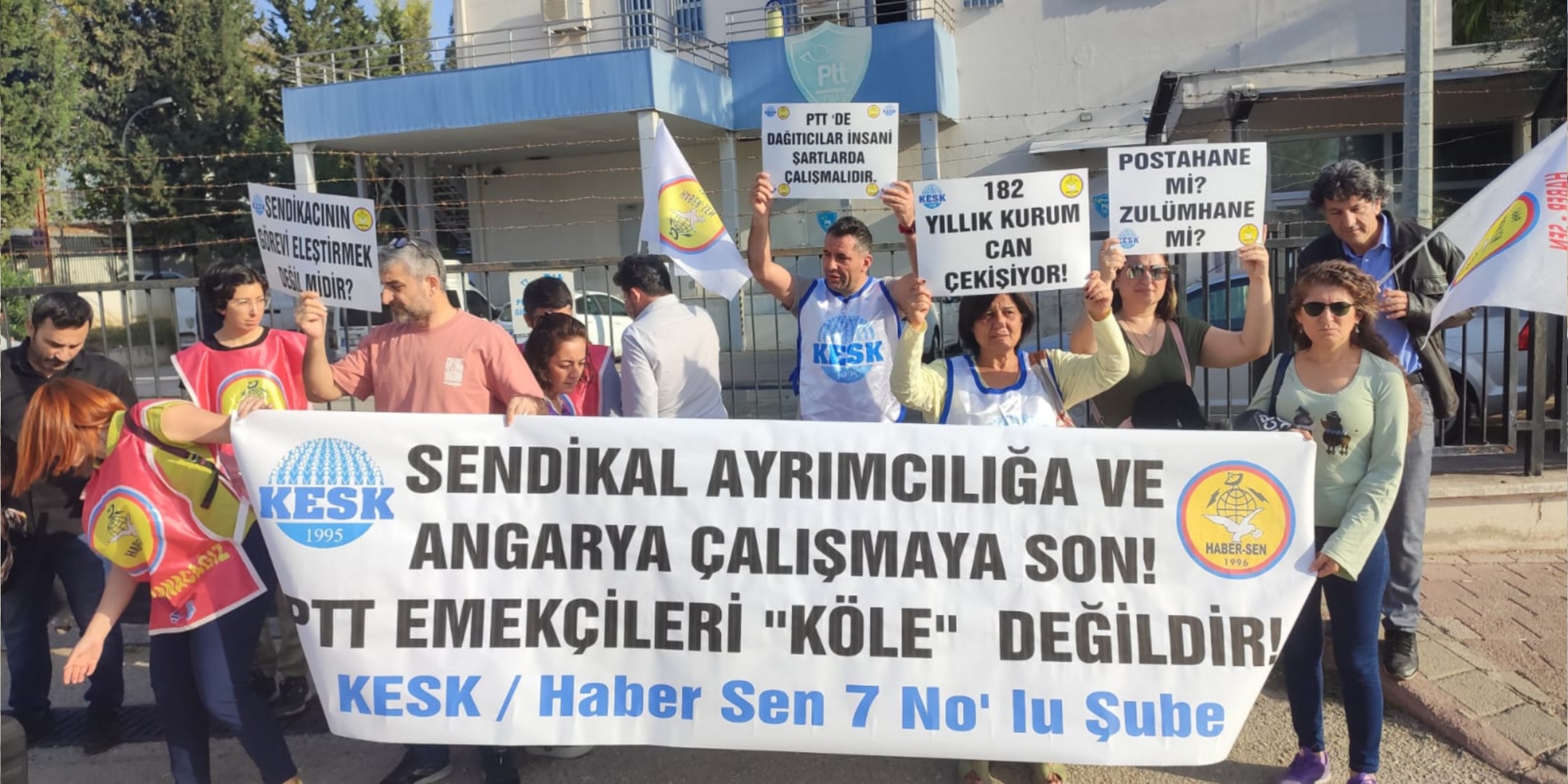 Adana’da Haber Sen 7 Nolu Şube üyesi PTT çalışanları, posta dağıtıcılarına yönelik performans dayatmasına karşı Seyhan Posta Dağıtım Merkezi önünde basın açıklaması yaptı. Açıklama öncesi kurumda posta dağıtımında çalışan emekçilere seslenmek isteyen KESK ve Haber Sen üyelerinin binaya girmeleri güvenlik görevlileri tarafından kendilerine bu şekilde emir geldiği gerekçesiyle engellendi.