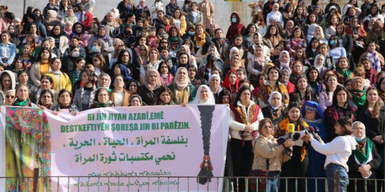 Kuzey ve Doğu Suriye’deki kadın örgütleri, kadın kazanımlarının yeni Suriye anayasasında açık biçimde yer alması için Qamişlo kentinde açıklama yaptı. Açıklamada, şu ifadelere yer verildi: “Her şeyden önce, öncü kadınların ve şehitlerin kanıyla yazılmış büyük fedakarlıkların önünde saygıyla eğiliyoruz. Rojava’daki kadın örgütleri olarak bugün koruduğumuz her kazanımın, onların mirasına sadakatle bağlılık olduğunu ve bu mirası boşa harcamamaya ya da pazarlık konusu yapmamaya kararlı olduğumuzu vurguluyoruz.