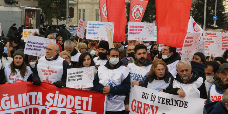 Yaşadıkları sorunlara dair aldıkları ve 2 gün sürecek grev kararı alan sağlık emekçileri, Kadıköy’de bulunan Beşiktaş İskelesi’nde protesto eylemi düzenledi. Eyleme, Türk Tabipler Birliği (TTB), Sağlık Emekçileri Sendikası (SES) İstanbul Şubeleri, İstanbul Tabip Odası (İTO), Türk Diş Hekimleri (TDB) İstanbul Odası, Türk Eczacılar Birliği (TEB) İstanbul Odası, İstanbul Aile Hekimleri Derneği (İSTAHED), Tüm Aile Sağlığı Memuru, hemşire ve ebe Derneği (İSAHED Türkiye Veteriner Hekimleri Birliği İstanbul Odası, Disk Genel Sağlık İş ve Dev Sağlık İş yanı sıra Birlik Dayanışma katıldı.