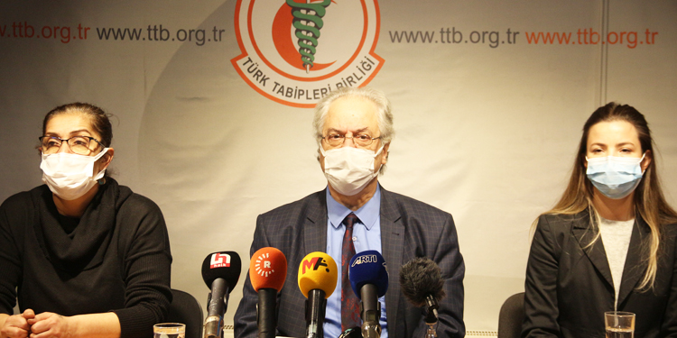 Basın toplantısında konuşan TTB Genel Sekreteri Prof. Dr. Vedat Bulut, Koronavirüs salgınının, mevcut sağlık sistemini, toplum sağlığını korumak bir yana daha da riske attığını belirterek, “Halkın sağlığını tehlikeye atan bu sağlık sisteminin yürütücüleri, iş özel sağlık işletmeleri ve zenginleri korumaya yönelik politikalara gelince hiçbir sınır tanımamış; salgın döneminde dahi bu anlayışından vazgeçmemiştir. Yüzlerce insanımız, sağlık çalışanı yaşamını yitirirken; onlar sağlık sistemlerinin, şehir hastanelerinin güzellemeleriyle günlerini geçirmektedirler” dedi.
