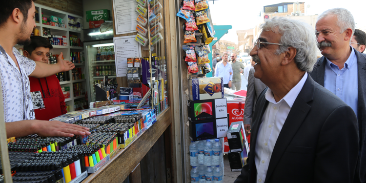 Halkların Demokratik Partisi’nin (HDP) “Bütçe Buluşmaları” kapsamında Mardin’de düzenlenen program Eş Genel Başkan Mithat Sancar ve HDP’li milletvekillerinin Artuklu ilçesinde gerçekleştirdiği esnaf ziyareti ile devam etti. Sancar ve beraberindeki heyet Tarihi Mardin 1’inci Cadde üzerinde gerçekleştirdikleri esnaf ziyareti ile esnafın sorunlarını dinledi, önerilerini not etti. Program kapsamında esnaf ile bir araya gelen Sancar ve beraberindeki heyet esnaf ile sohbet etti. Esnaf ile yaşanan diyalogda “Barış bütçesi için yola çıktıklarını” belirten Sancar’a esnaflar, iş yapamadıklarını ve piyasalarda bir günün diğer günü tutmamasından yakındı.