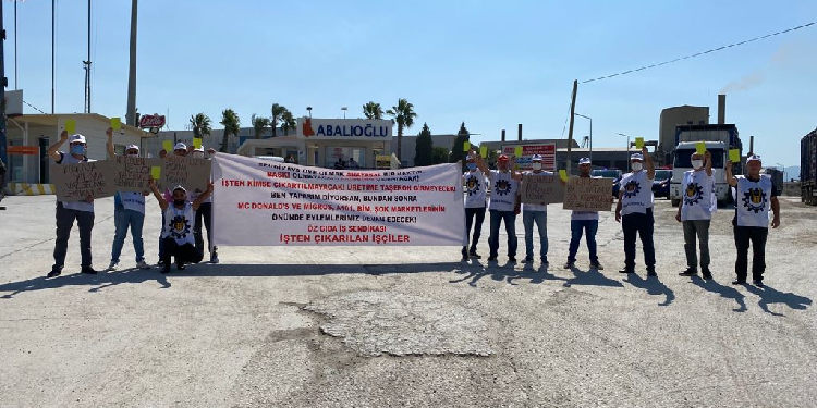 Manisa Turgutlu ilçesinde faaliyet gösteren Abalıoğlu Lezita Gıda Sanayi Anonim Şirketi, Hak-İş’e bağlı Öz Gıda-İş Sendikası’na üye oldukları gerekçesiyle 15 işçiyi “Yüz kızartıcı” maddeden işten çıkardı. İşçiler 4857 sayılı yasanın 25/2 maddesi ile tazminatsız olarak işinden edildi. Yaklaşık 10 gündür aralıklı bir şekilde işlerinden edilen işçiler, Abalıoğlu Lezita fabrikası önünde toplandı. İşçiler, işten çıkarılmalara ve yaşadıkları hukuksuzluğa karşı gün boyu oturma eylemi yaparak, akşam saatlerinde sarı kart gösterip uyarıda bulunacak.