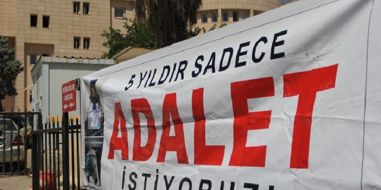 Urfa’nın (Riha) Suruç (Pirsûs) ilçesinde 14 Haziran 2018 tarihinde AKP eski Milletvekili İbrahim Halil Yıldız’ın koruma ve yakınları tarafından eşi ve iki oğlu katledilen Emine Şenyaşar ile saldırılardan yaralı kurtulan oğlu Ferit Şenyaşar’ın 9 Mart 2021’de Urfa Adliyesi önünde başlattığı Adalet Nöbeti 844’üncü gününde. Suruç’ta (Pirsûs) bulunan evinden adliye önüne gelen Emine Şenyaşar, “Şenyaşar Ailesi Adalet Köşesi” olarak adlandırılan alanda, “5 yıldır sadece adalet istiyoruz” pankartı açarak nöbete başladı.