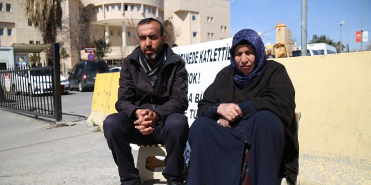 Urfa’nın Suruç ilçesinde 14 Haziran 2018 tarihinde AKP Milletvekili İbrahim Halil Yıldız’ın koruma ve yakınlarının saldırısı sonucu eşi ve iki oğlunu yitiren Emine Şenyaşar ile saldırılardan yaralı kurtulan oğlu Ferit Şenyaşar’ın, Urfa Adliyesi önünde 9 Mart’ta başlattığı Adalet Nöbeti 405’inci gününde. Hafta sonu adliyenin kapalı olması nedeniyle aile, nöbeti Suruç ilçesinde bulunan evlerinde sürdürdü.