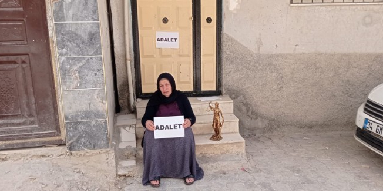 Urfa’nın (Riha) Suruç (Pirsûs) ilçesinde 14 Haziran 2018 tarihinde AKP eski Milletvekili İbrahim Halil Yıldız’ın koruma ve yakınları tarafından eşi ve iki oğlu katledilen Emine Şenyaşar ile saldırılardan yaralı kurtulan oğlu Ferit Şenyaşar’ın 9 Mart 2021’de Urfa Adliyesi önünde başlattığı Adalet Nöbeti 842’inci gününde. Bugünkü nöbet eylemi Emine Şenyaşar’ın rahatsızlığı sebebiyle Pîrsus’taki evlerinde sürdü.