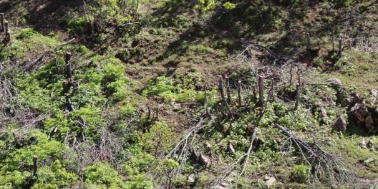 Şenyayla bölgesinde askeri üs ve karakol inşa etmek için ormanlık alanlarda ağaç kıyımı yapılıyor.