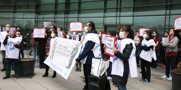 SES İstanbul Şubesi Eşbaşkanı Fadime Kavak, sağlık emekçilerinin pandemi döneminde karşılaştıkları zorluklara rağmen büyük bir azimle çalıştığını ifade ederek, “Biz sağlık emekçileri anlımızın teri olan hakkımızı istiyoruz. Yaşatmak için yaşamak lazım, yaşamak istiyoruz. 324 sağlık emekçisi hayatını kaybetti. Onlara sözümüz; yaşatmaya devam edeceğiz ama hakkımızı yedirmeden devam edeceğiz” dedi.