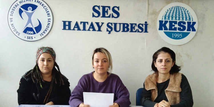 SES Hatay Şubesi de, promosyon ödemelerine dair sendika binasında açıklama yaptı. Açıklamada konuşan SES Hatay Şubesi Eşbaşkanı Meryem Avcı, banka promosyon anlaşmasındaki personele yönelik cezai yaptırımların iptal edilmesini isteyerek, “Bütün bu nedenlerle sözleşmeyi imzalayan İl Sağlık Müdürlüğü’nü sağlık emekçilerini mağdur edecek bu maddeleri tekrardan değerlendirip, sözleşmenin revize edilmesi için bankayla yeni bir görüşme yapmaya davet ediyoruz” dedi.