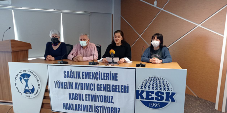 Sağlık ve Sosyal Hizmet Emekçileri Sendikası (SES) Eş Genel Başkanı Selma Atabey, pandemi kısıtlamaları kapsamında Sağlık Bakanlığı yayınladığı genelgeye ilişkin basın toplantısı düzenledi. SES Genel Merkez binasında yapılan toplantıda “Sağlık emekçilerine yönelik ayrımcı genelgeleri kabul etmiyoruz haklarımızı istiyoruz” pankartı asıldı.