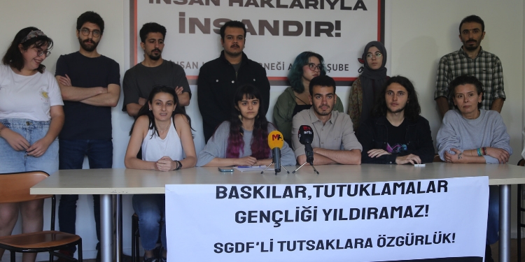 Gençlik örgütleri, Sosyalist Gençlik Dernekleri Federasyonu’na (SGDF) yönelik polis operasyonunda tutuklanan ve 14 Eylül’de hakim karşısına çıkacak gençler için İnsan Hakları Derneği (İHD) Ankara Şubesi’nde basın toplantısı gerçekleştirdi. Birçok dernek üyesi gencin katıldığı basın toplantısında, “Baskılar tutuklamalar gençliği yıldıramaz, SGDF’li tutsaklara özgürlük” pankartı açıldı.