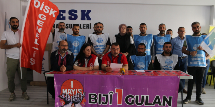 Kamu Emekçileri Sendikası (KESK) Şırnak Şubeler Platformu’nda düzenlenen toplantıya kentteki sendika temsilcileri katıldı. Açıklamada, “Bijî 1 Gulan” pankartı açıldı. DİSK Genel İş Şube Başkanı Ayhan Ergen, ekonomik krize dikkat çekerek,”Kapitalizmin yaşadığı her alandaki krizin en büyük olumsuzluklarını biz işçiler emekçiler ve halkımız çekiyoruz. Devlet ve iktidar eliyle yaratılan yoksulluğu, devletin bütçesinin bir kısmının savaşa ayrılmasını kabul etmiyoruz. Emeklerimizin karşılığını alana kadar mücadelemizi sürdüreceğiz. Mücadelemiz 1 Mayıs ruhuyla büyüyerek devam edecektir” dedi.