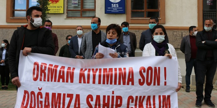 Şırnak Kamu Emekçileri Sendikaları Konfederasyonu (KESK) Şubeler Platformu’nun öncülüğünde, doğa katliamına karşı ortak basın açıklaması yapıldı. KESK binası önünde yapılan açıklamaya HDP Şırnak İl Örgütü, sendika ve sivil toplum örgütleri katıldı. Açıklamada “Orman kıyımına son, doğamıza sahip çıkalım” pankartı açılırken, ortak açıklama Şırnak Eğitim Sen Kadın Sekreteri Serap Ok tarafından okundu.