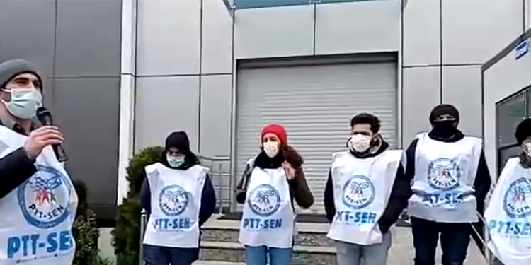 PTT’de çalışırken kendi kurdukları PTT-SEN ve PTT KARGO-SEN’e üye oldukları için işten çıkarılan taşeron PTT çalışanları, taşeron Saf Avrasya Adi Ortaklığı’nın İstanbul’un Üsküdar ilçesinde bulunan genel merkezi önünde bir eylem düzenlediler. İşçiler, sendikaya üye oldukları için Kod-29 ile işten çıkarılmalarına tepki göstererek, şirket yetkilileriyle görüşmek istediler.
