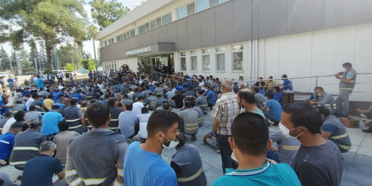 İl Müdürlüğü bahçesinde bekleyen işçiler “Başkan istifa”, “Sefalet zammına hayır”, “İşçiyiz haklıyız kazanacağız”, “İşçi burada başkan nerede”, “Direne direne kazanacağız” ve “Sendika gelecek hesap verecek” sloganları ile sendikayı protesto etti. İşçilerin eylemi nedeniyle polis kurum içi ve çevresini ablukaya alırken, gazetecilerin çekim yapmasına izin verilmedi. İşçilerin eylemleri devam ediyor.