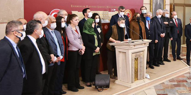 Türk Tabipler Birliği (TTB) Merkez Konsey Başkanı Şebnem Korur Fincancı, aralarında Halkların Demokratik Partisi (HDP), Cumhuriyet Halk Partisi (CHP) ve İYİ Parti milletvekilleriyle birlikte Meclis’te basın toplantısı düzenledi.