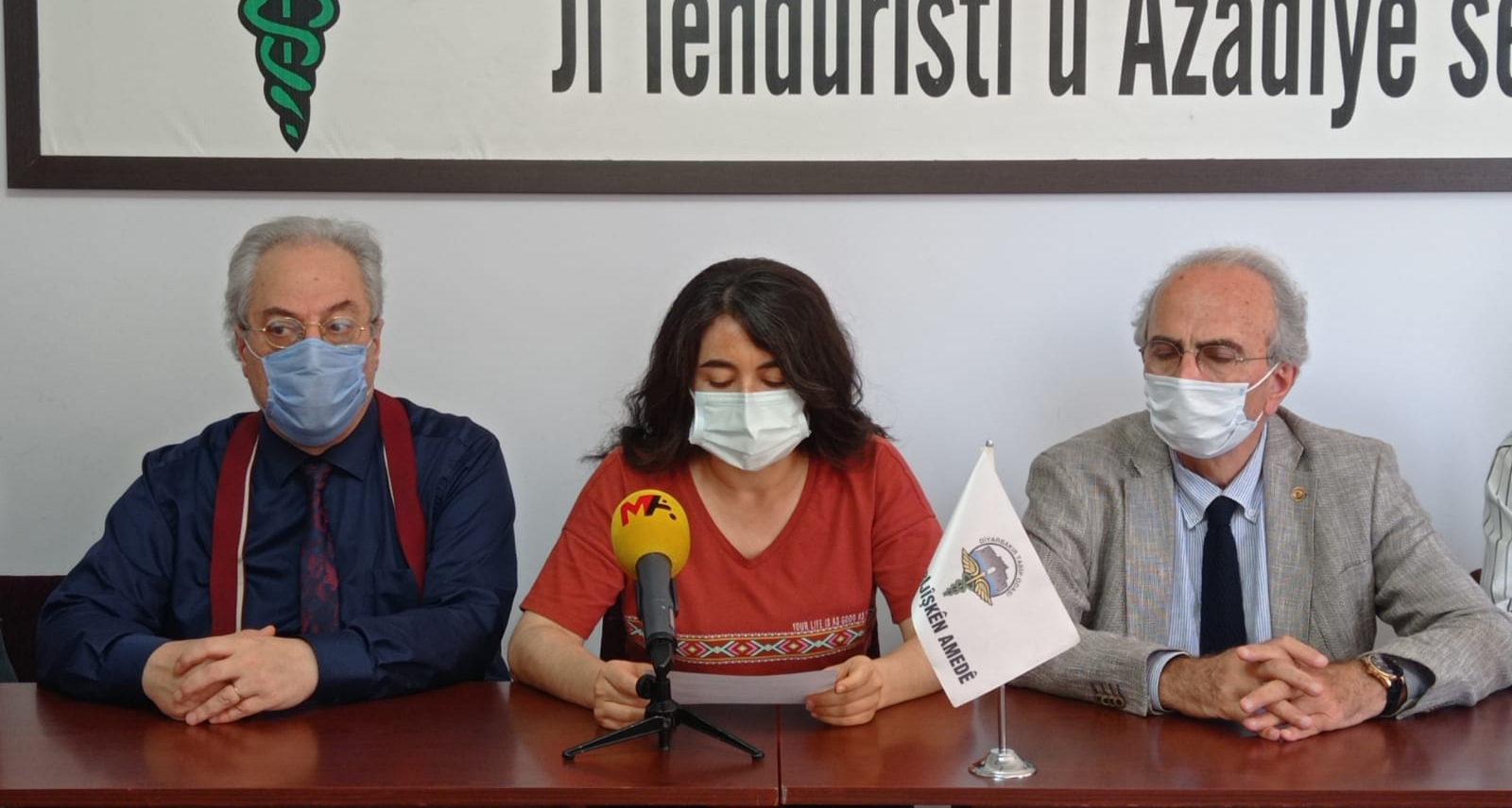 Türk Tabipler Birliği (TTB) Merkez Konseyi ve Diyarbakır Tabip Odası, TTB Yüksek Onur Kurulu üyesi Dr. Şeyhmus Gökalp hakkında açılan davanın yarın görülecek duruşmasına ilişkin basın toplantısı düzenledi. Diyarbakır Tabip Odası’nda yapılan açıklamaya, TTB Merkez Konseyi eski Başkanı Eriş Bilaloğlu, TTB Genel Sekreteri Vedat Bulut, TTB Merkez Konseyi Üyesi Halis Yerlikaya, İstanbul Tabip Odası yöneticisi Osman Öztürk ve Diyarbakır Tabip Odası Başkanı Elif Turan ile oda üyeleri katıldı.