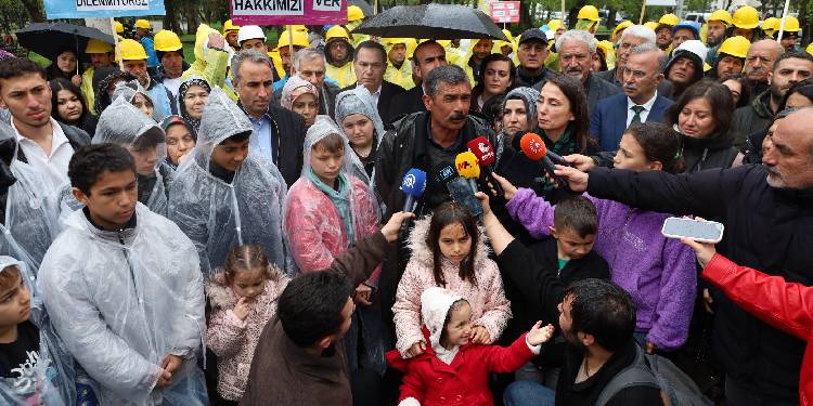Çakır, devamında şunları söyledi: “Bu işçiler yağmur çamur demeden, kar kış demeden bir de açlık grevindeler. Ülkedeki tüm kamuoyuna, tüm siyasi partilere sesleniyorum; bu mesele bir an önce çözülmelidir. Bu çocuklar şu anda ‘babamız parasını alacak’ diye buraya geldiler eyleme katıldılar. Bu durum Türkiye Cumhuriyeti’ni yönetenlerin ayıbıdır. Bunu böyle biliyorum; Ben de bir köylü çocuğuyum. Evet ben de 22 sene bir madende çalıştım. Ancak bu kadar da olmaması gerekiyor. Buradan şunu söylüyoruz; Ankara’dan gitmeyeceğiz, işçinin hakkını almadan hiçbir yere gitmeyeceğiz. Bunun ucunda cezaevi olabilir. Bunun ucunda ölüm olabilir. Ancak bu işçi arkadaşlarımızın bu çocuklarını biz mağdur etmeyeceğiz.”