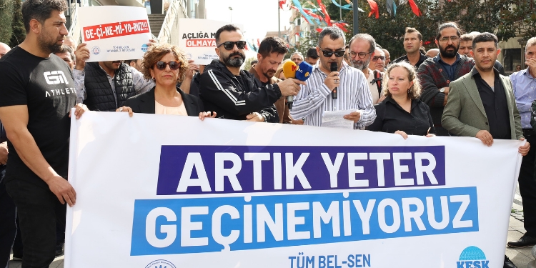 “Artık yeter geçinemiyoruz” pankartının açıldığı açıklamada, “Açlığa mahkum olmayacağız”, “Sözünüzü tutun”, ” Yaşasın örgütlü mücadelemiz” dövizleri taşıyan sendika üyeleri sık sık, “Emekçiyiz, haklıyız, kazanacağız”, “Yaşasın örgütlü mücadelemiz sloganları attı.