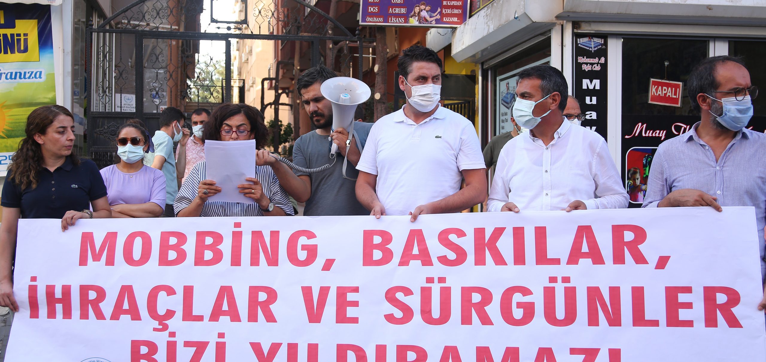 Üyelerine yönelik olumsuz tutum ve baskıların yaşandığı en dikkat çekici belediyenin kayyımla yönetilen Diyarbakır Büyükşehir Belediyesi olduğunu kaydeden Tosu, “Diyarbakır şube yöneticisi, işyeri temsilcisi ve üyesi birçok arkadaşımız hukuksuz bir biçimde ihraç edilmesi sonrasında, ihraç edilmeyen üye ve yöneticilerimiz de yoğun bir baskıya ve mobbinge maruz kalmış, hukuksuz ihraç ve açığa alma uygulamaları, tehdit aracı olarak kullanılarak üyelerimiz sendikamızdan istifaya zorlanmıştır” şeklinde konuştu.