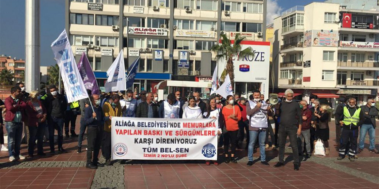 Tüm Belediye ve Yerel Yönetim Hizmetleri Emekçileri Sendikası (TÜM BEL-SEN) İzmir 2 Nolu Şubesi, Aliağa Belediye Başkanı Serkan Acar’ın üye ve yöneticilerine baskı uygulayıp, sürgün etmesini protesto etti. Aliğa Demokrasi Meydan’ında yapılan açıklamaya çok sayıda kişi katıldı.