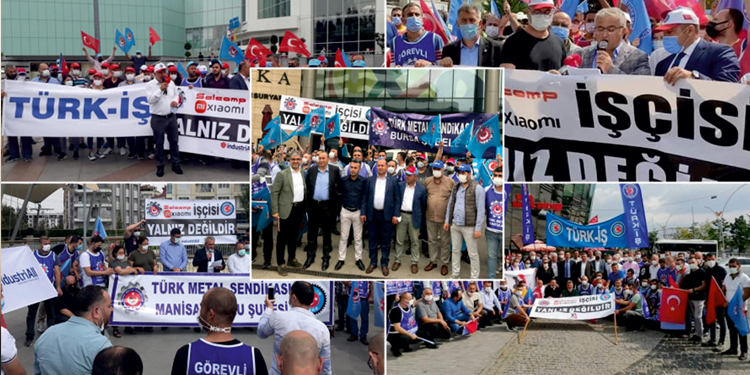 Türk Metal Sendikası, üyesi olan 125 işçiyi işten çıkaran Salcomp Xiaomi yönetimine karşı eş zamanlı basın açıklamaları düzenledi.