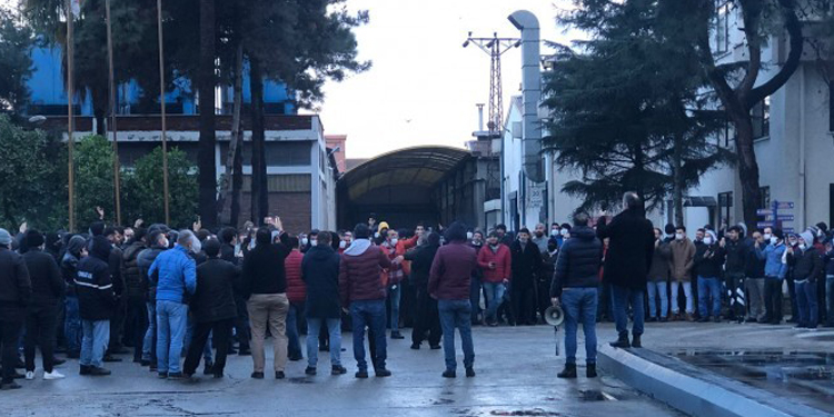 İşçilerin fabrika önündeki bekleyişi sürüyor.