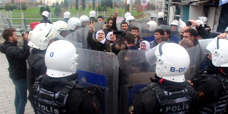Hak, hukuk ve adaletten başka bir şey istemediklerinin altını çizen tutuklu yakınları, kendilerine yönelik her hafta gerçekleştirilen polis baskısını kabul etmediklerini vurguladı. Tutuklu yakınlarının itirazlarını dile getirmesinden sonra polis, grubu ablukaya aldı. Abluka içerisinde bulunan tutuklu yakınları ve kendilerine destek veren yurttaşlar, zafer işareti yaparak, “Biji berxwedana zindana” ile “Hak, hukuk, adalet“ sloganları attı. Polis slogan atılması üzerine ablukadakileri gözaltı aracına bindirmeye çalıştı. Polisin müdahalesine rağmen slogan atmaya devam eden 4 tutuklu yakını gözaltına alındığı sırada Ömer Ertuğrul, Serhat Ertuğrul ve ismi öğrenilemeyen bir kişi de eyleme destek verdikleri gerekçesiyle gözaltına alındı.