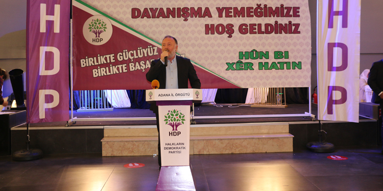 Halkların Demokratik Partisi (HDP) Adana İl Örgütü, “Dayanışma yemeği” etkinliği düzenledi. Adana Seyhan ilçesindeki bir düğün salonunda düzenlenen etkinliğe, “Birlikte Güçlüyüz Birlikte Kazanacağız” pankartı asıldı. Etkinliğe, HDP Adana Milletvekilleri Tülay Hatimoğulları ve Kemal Peköz, Van Milletvekili Sezai Temelli ve HDP MYK üyesi Doğan Erbaş, Barış Anneleri, Tevgera Jinen Azad (TJA), Tutuklu ve Hükümlü Aileleriyle Yardımlaşma Derneği (TUAYDER),  Demokratik Bölgeler Partisi (DBP), İnsan Hakları Derneği (İHD) üyeleri ile kentte bulunan Sivil Toplum Örgütleri (STÖ) ve siyasi parti temsilcilerin yanı sıra çok sayıda yurttaş katıldı.  Etkinlikte sürekli olarak “Biji serok apo” “Siyasi tutsaklar onurumuzdur” sloganları atıldı.