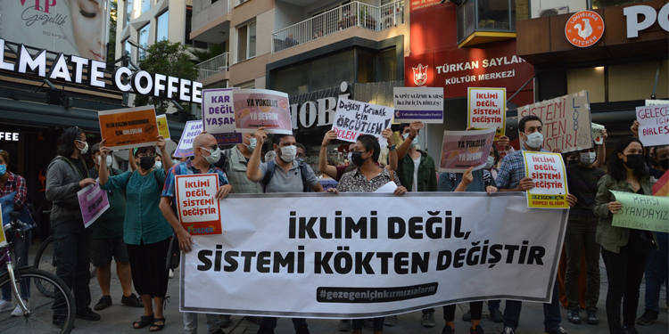 Siyasi parti temsilcileri, sivil toplum örgütleri ile yaşam savunucuları iklim değişikliği ve küresel ısınmaya karşı Türkan Saylan Kültür Merkezi önünde ortak açıklama yaptı. “İklimi değil sistemi kökten değiştir” yazılı pankartın açıldığı açıklamasında sık sık “İklimi değil sistemi değiştir” “Doğaya yaşama yeryüzüne özgürlük”, “AKP Elini doğamızdan çek” sloganları atıldı.