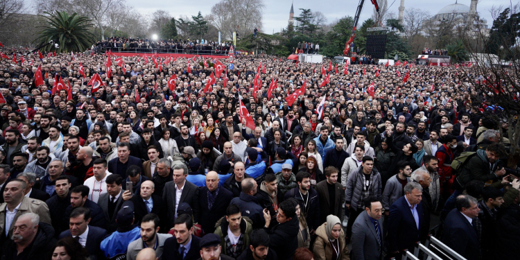 İktidarın seçim öncesi İstanbul Büyükşehir Belediyesi’nin olanaklarını kullanmak isteyebileceğini belirten Davutoğlu, ancak karar ardından Saraçhane’de ortaya çıkan sahiplenme ardından iktidarın kayyım atamaya cesaret edemeyeceğini söyledi.