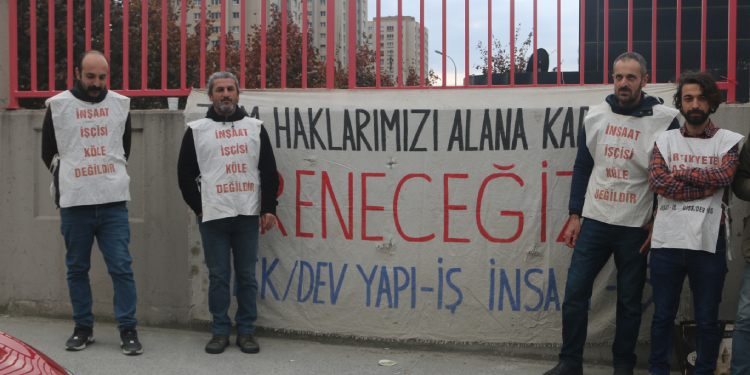 İstanbul’un Ataşehir ilçesinde bulunan Finans Merkezi bünyesindeki YDA Group firmasına bağlı Halkbank şantiyesinde çalışan Devrimci Yapı, İnşaat ve Yol İşçileri Sendikası (Dev Yapı- İş) üyesi Aydın Kargili, kıdem tazminatının ödenmemesi ve çift bordro uygulaması ile çalışma hakları gasp edildiği gerekçesiyle firma önünde dün eylem başlattı.