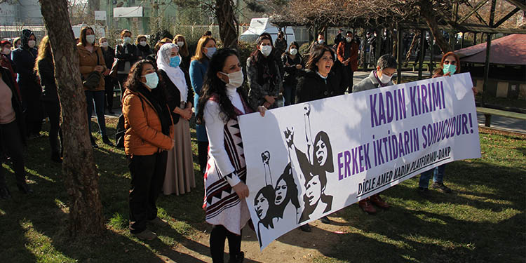 Diyarbakır’da faaliyet yürüten Dicle Amed Kadın Platformu (DAKP) da, 2020 yılı içerisinde katledilen kadınlara ilişkin açıklama yaptı. Merkez Yenişehir ilçesindeki bir park içerisinde yapılan açıklamaya Halkların Demokratik Partisi (HDP) Diyarbakır milletvekilleri Remziye Tosun ve Semra Güzel de katıldı. Üzerinden “Kadın kırımı erkek iktidarın sonucudur” yazılı pankart taşıyan Platform üyeleri, kadın cinayetlerine yönelik tepkilerini attıkları “Erkek vuruyor, devlet koruyor”, “Erkek değil, gerçek adalet”, Susmuyoruz, korkmuyoruz, itaat etmiyoruz” ve “Jin, jiyan, azadî” sloganları ile gösterdi.