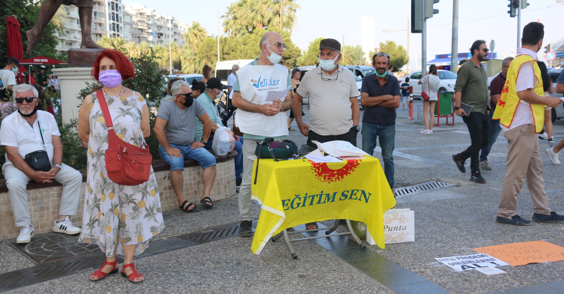 Eğitim ve Bilim Emekçileri Sendikası (Eğitim-Sen), Veli Öğrenci Derneği (Veli-Der) ve Öğrenci Velileri Derneği (ÖVDER), salgın nedeniyle iki yıla yakındır öğrencilerin gördüğü uzaktan eğitim sistemine son verilerek, yüz yüze eğitimin başlaması için Karşıyaka çarşı girişinde stant açtı. Stantta okulların açılması için imza kampanyası başlatıldı.